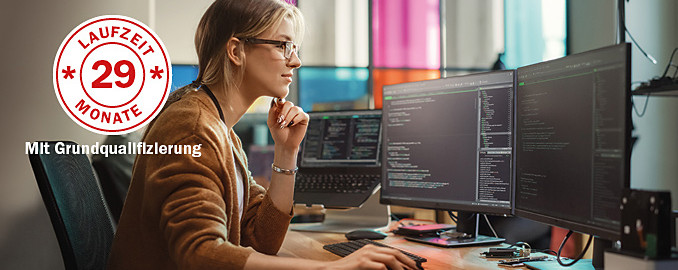 Wenn Sie ein starkes Interesse an der Entwicklung und Programmierung von Software haben, ist diese Umschulung genau das Richtige für Sie. Als Fachinformatiker/in Anwendungsentwicklung eröffnen sich Ihnen spannende Perspektiven. Ob für den eigenen Betrieb oder als Dienstleistung für Kundenunternehmen – Sie werden befähigt, betriebseigene Programme zu erweitern oder maßgeschneiderte Lösungen zu entwickeln, die den individuellen Bedürfnissen Ihres Unternehmens oder den Anforderungen Ihrer Kunden entsprechen.